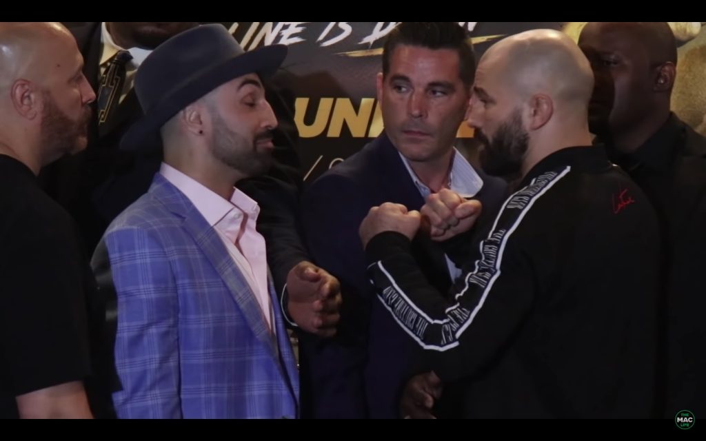 En el vídeo del encuentro, se puede oír a Malignaggi afirmando que Artem tiene más derrotas que victorias en el MMA, mientras que Lobov cuestiona cuántas peleas reales hizo el ex boxeador en su carrera. La discusión empieza a calentarse cuando el ruso apunta con el dedo al rival. Paulie, entonces, escupe hacia él, lo que provoca un tumulto.