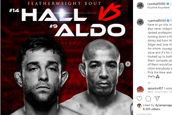 Sin compromisos desde que ganó a Darren Elkins en julio de 2019 y con solo cuatro peleas desde su debut en UFC, en diciembre de 2015, Ryan Hall aparentemente perdió los estribos y decidió cambiar el enfoque de su carrera. En una publicación en su cuenta en Instagram, el peso pluma (66 kg) cambió su postura, como él mismo admitió y cortés y llanamente desafió a José Aldo y Frankie Edgar a una disputa en el octágono más famoso del planeta.