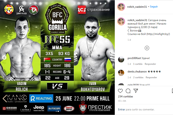 En uno de los seis partidos de MMA promocionados en la tarjeta del evento, el luchador local Vadim Rolich venció al ruso Ivan Bukhtoyarov con un nocaut inusual. Incluso defendiéndose de una pierna en el suelo, el peso semipesado bielorruso lo golpeó con el dorso de su mano e inmediatamente terminó a su rival, garantizando su victoria después de algunos puños más y la interrupción del árbitro.