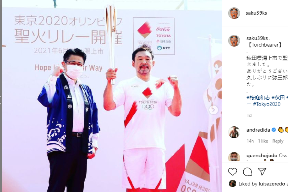 Leyenda de las MMA Kazushi Sakuraba lleva antorcha olímpica en Japón