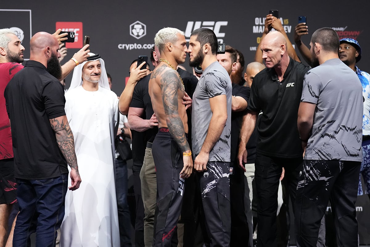 La rivalidad entre Charles ‘Do Bronx’ Oliveira e Islam Makhachev realmente se quedó dentro del octágono. El sábado (11), los dos rivales divisionales tuvieron un encuentro amistoso entre bastidores del UFC 284, poco después de la victoria del ruso sobre Alexander Volkanovski, que le garantizó su primera defensa exitosa del cinturón de peso ligero (155 lb) de la UFC.