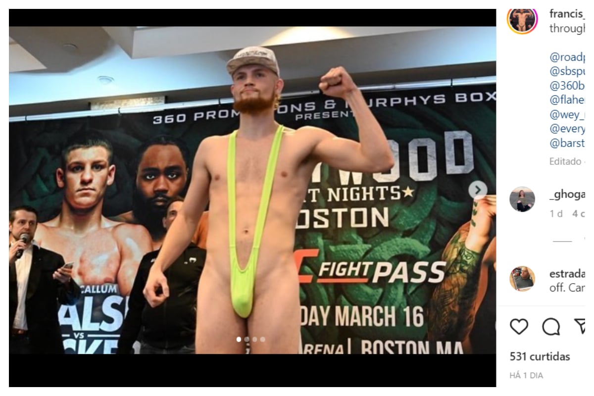 Una escena más allá de lo inusual se volvió viral en la escena de los deportes de combate esta semana. Invicto en el boxeo profesional, Francis Hogan se robó el espectáculo durante el pesaje oficial para su próxima pelea. Con apenas 22 años, el estadounidense atrajo las miradas de todos los presentes en la ceremonia al lucir una especie de tirantes y tanga de mega corte.