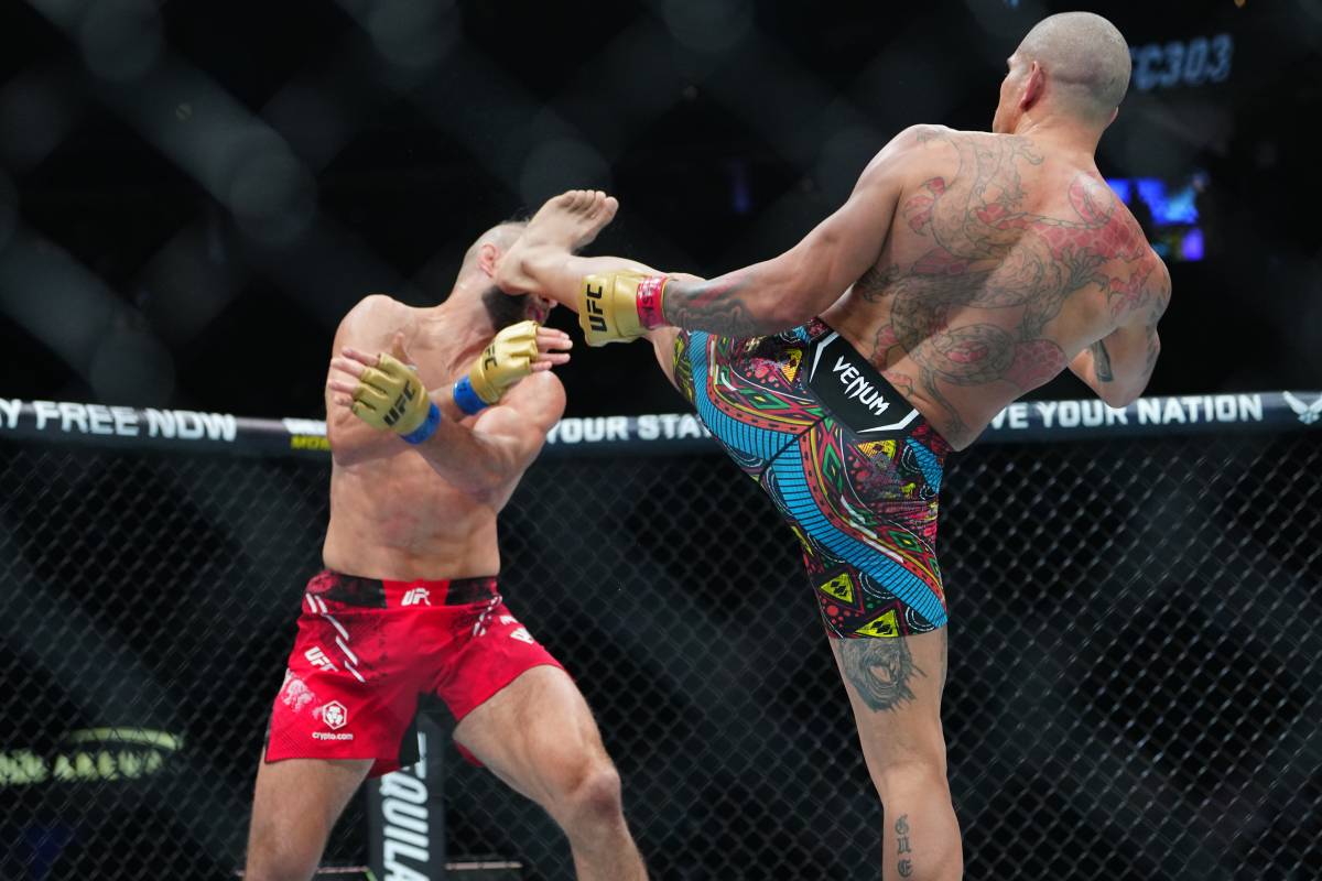Ganador de uno de los bonos ‘Performance of the Night’ distribuidos en UFC 303, el pasado sábado (29), Alex Pereira se embolsó 303 mil dólares, en lugar de los 50 mil dólares que tradicionalmente la organización paga a los ganadores del premio. La revelación la hizo Plinio Cruz, entrenador del campeón de peso semicompleto (205 lb) de UFC, en una entrevista con el programa ‘The MMA Hour‘.