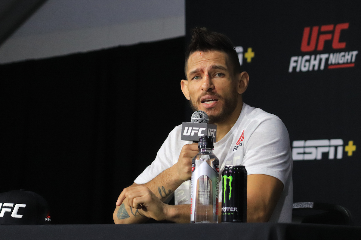 LAS VEGAS, NV - NOVEMBER 28: Anderson dos Santos interacts with media after the UFC Vegas 15 event at UFC Apex on November 28, 2020 in Las Vegas, Nevada, United States. (Photo by Diego Ribas/PxImages)