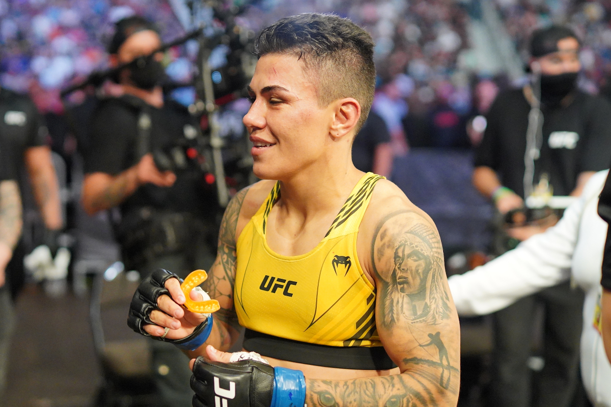 La ex campeona de peso paja de la UFC (115 lbs), Jéssica ‘Bate-Estaca’ se aseguró la oportunidad por el título en la división de moscas después de ganar el primer lugar en el ranking, tras vencer a Katlyn Chookagian, en su debut en la categoría. Vista como una amenaza real para el reinado de Valentina Shevchenko, la brasilera, sin embargo, terminó enfrentando a la atleta de Kirguistán, en un duelo válido por la cartelera UFC 261, celebrado en Jacksonville, Florida (EE. UU.).