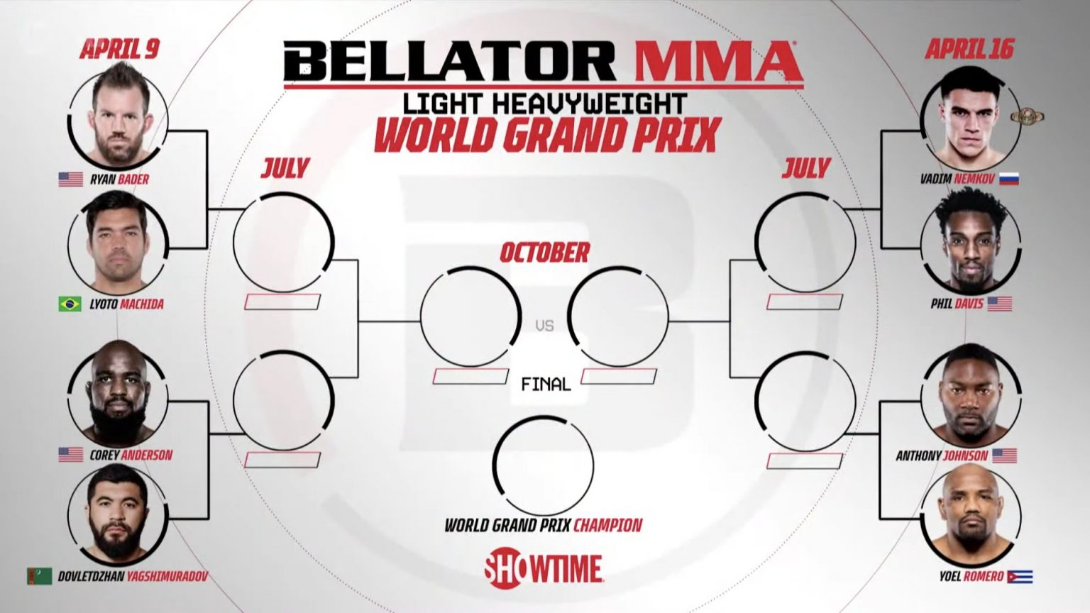 El esperado anuncio de Bellator, realizado el martes (9), contó con el cronograma oficial para el GP de peso semicompleto (205 lb). Y destacan, los estrenos de Yoel Romero y Anthony Johnson, así como las apariciones de Lyoto Machida y Ryan Bader.