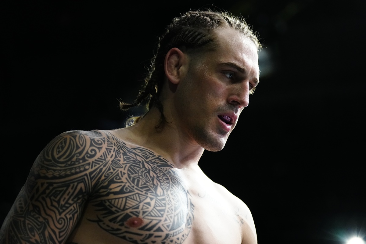 Allen pudo conectar al escocés que quedó mal y cayó a la lona en el segundo asalto. Allí, el estadounidense lo castigó con el ground and pound y lo cortó en la ceja derecha. Hasta que sonó la campana, el local mantuvo el dominio en el piso.