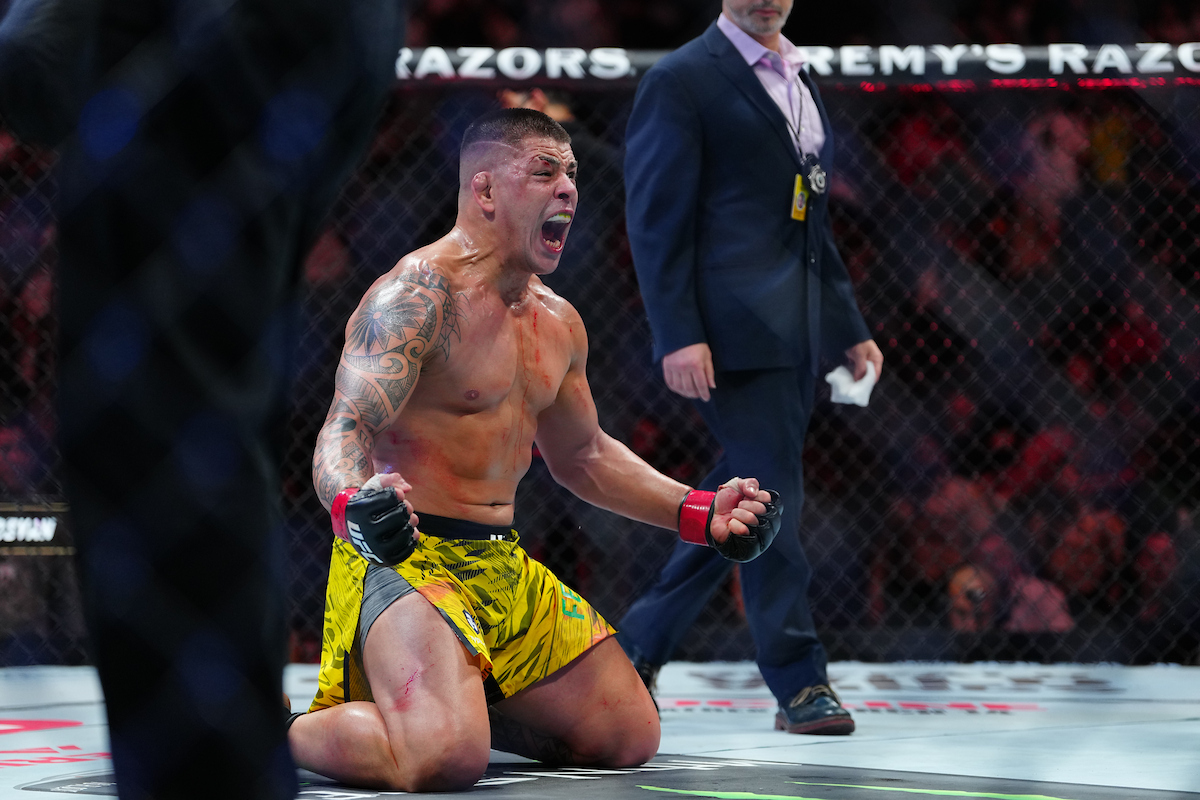 LAS VEGAS, NV - MARCH 8:Brunno Ferreira and Armen Petrosyan meet in the octagon for a 3-round bout at UFC313 - Pereira vs Ankalaev at T-Mobile Arena on March 8, 2025 in Las Vegas, Nevada (Photo by Louis Grasse/PxImages)