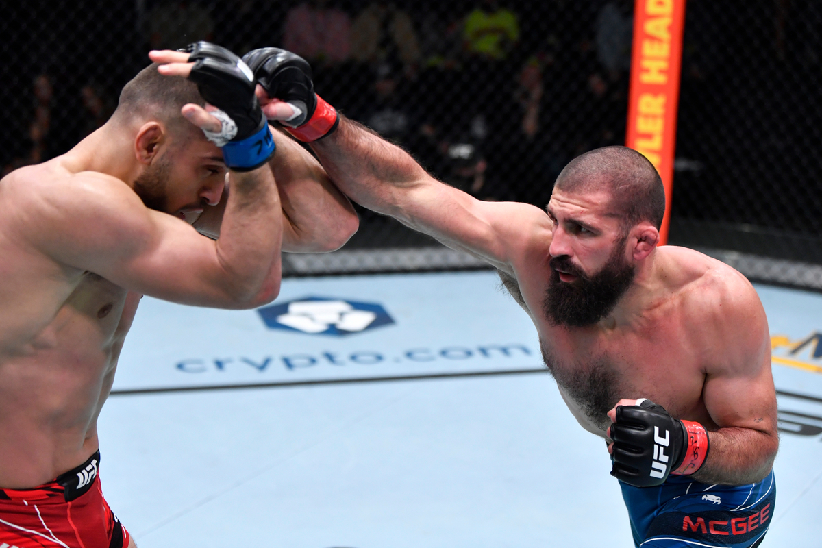 En la cartelera preliminar, Court McGee consiguió su segunda victoria consecutiva al derrotar por decisión unánime (30-27, 30-27, 30-27) a Ramiz Brahimaj en el UFC Vegas 46, que se llevó a cabo en las instalaciones del UFC Apex en Las Vegas (EE.UU.).