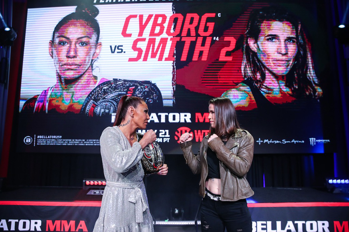 Durante la celebración del Bellator 255, evento realizado este viernes (2) en los Estados Unidos, la brasileña Cris ‘Cyborg’ conoció el nombre de su próxima rival en la organización. El próximo 21 de mayo, la campeona del peso pluma (145 lb) pone en juego su título ante la norteamericana Leslie Smith.