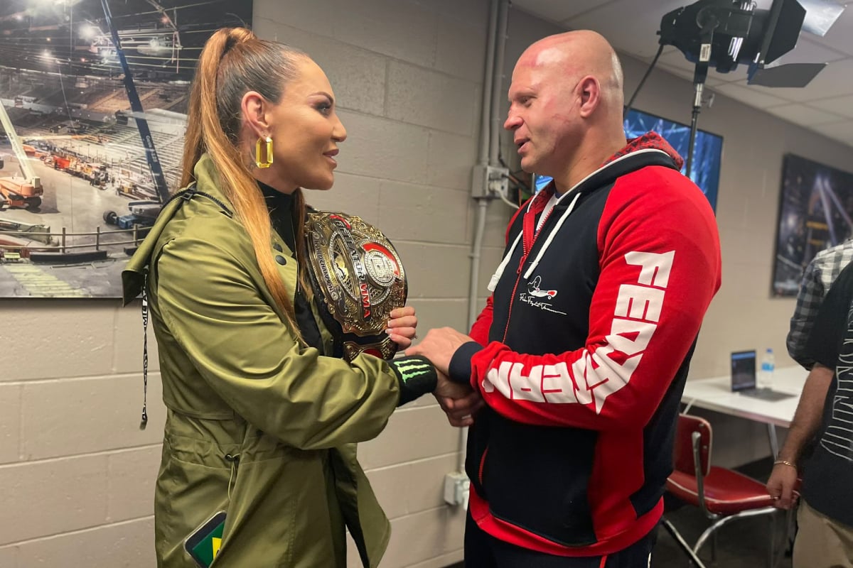 En la pelea principal del Bellator 290, Emelianenko terminó con su carrera en las MMA siendo noqueado por Ryan Bader, en una batalla por el cinturón del peso pesado. A pesar de la derrota, el ruso recibió varios homenajes siendo uno de ellos, precisamente de ‘Cyborg’. En declaraciones ofrecidas al posterior del choque, la brasileña mostró su cariño y respeto por el ícono del deporte y posó en una foto.
