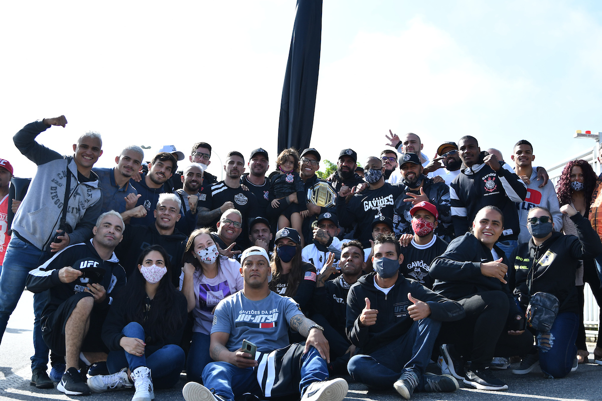 En medio de la multitud, aún quedaba por provocar al máximo rival del Corinthians. Rodeado por los miembros de ‘Gaviões da Fiel’, el nuevo campeón de la UFC bromeó sobre el hecho de que ahora tiene un título mundial y Palmeiras no, una vieja provocación entre los fanáticos rivales. El video fue proporcionado a Ag. Fight mediante el departamento de prensa del monarca.
