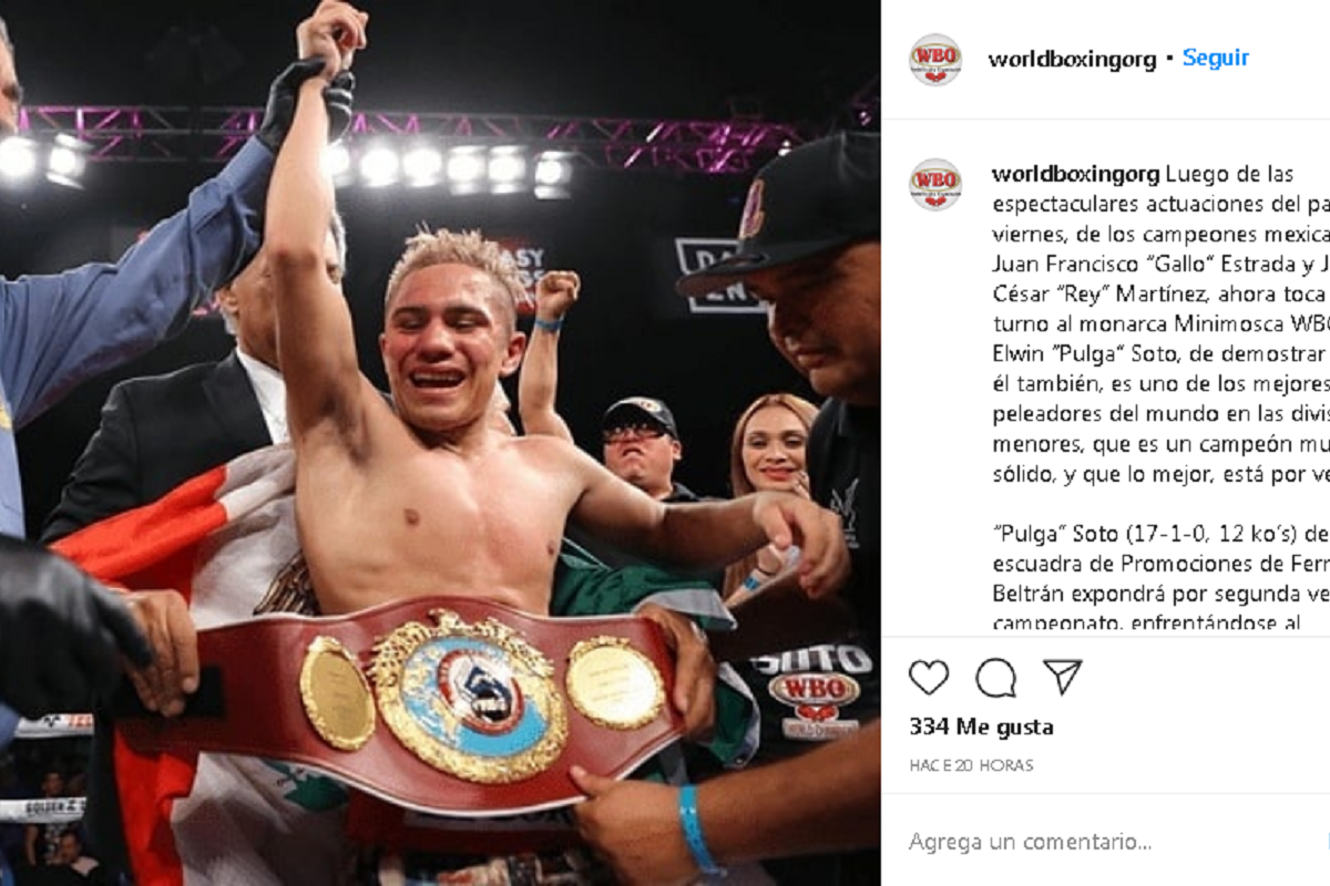 Elwin Soto, de 24 años, es campeón desde junio de 2019 y ha hecho dos defensa exitosas del cinturón de las 108 libras de la OMB. La ‘Pulga’ tiene marca de 18 victorias y una derrota, con 12 nocauts. Por su parte, Katsunari Takayama fue múltiple monarca de peso mínimo, y ahora buscará la faja minimosca. A sus 37 años, posee récord de 32 triunfos (12 por la vía rápida) y 8 reveses. El japonés que no peleaba desde el 2016, el año pasado descolgó los guantes y ganó.