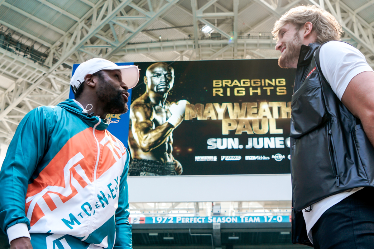 El encuentro entre los dos luchadores se dio a conocer en las redes sociales de ‘Showtime’, la empresa que organiza el enfrentamiento. En una especie de ‘escenario’ improvisado, con la multitud al fondo, los dos estaban frente a frente y la tensión aumentaba. Ambos concursantes tenían la cara casi plana, con Logan pronunciando algunas palabras, mientras Floyd permanecía en silencio. Un factor que llamó la atención fue la diferencia de altura, con el youtuber mucho más grande que el boxeador.