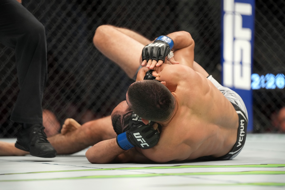 El estadounidense de ascendencia mexicana Johnny Munoz ganó por primera vez en el octágono más famoso del mundo, luego de someter a su compatriota Jamey Simmons, en la segunda ronda, en la pelea que abrió las acciones de la tarjeta preliminar anticipada del UFC 265, disputado este sábado (7) en Houston (EE.UU.).