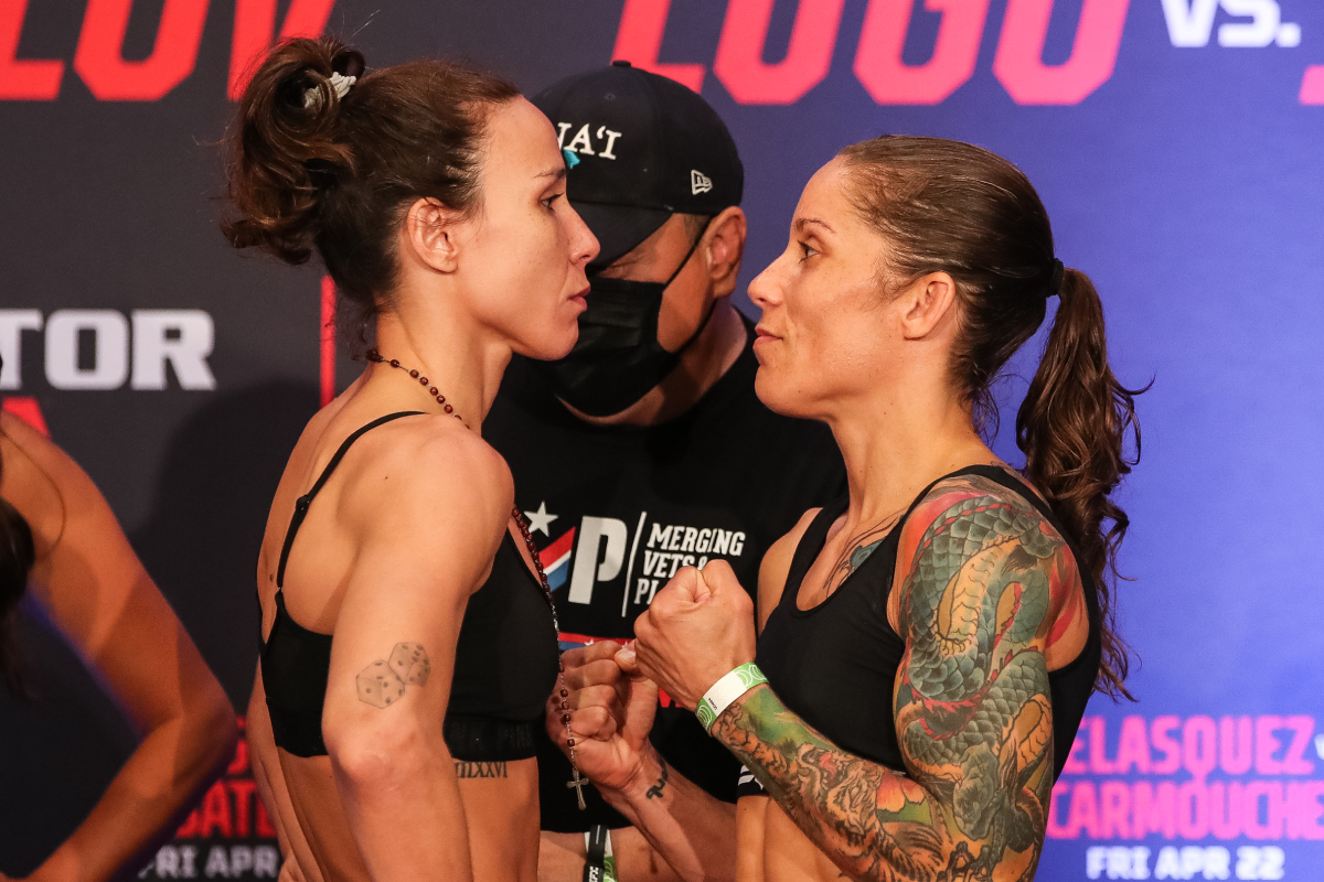 La principal atracción de Bellator 278, evento realizado este sábado (22), fue la pelea entre Juliana Velásquez y Liz Carmouche, válida por el cinturón de peso mosca (125 lb). Sin embargo, a pesar de la importancia del enfrentamiento y el alto nivel técnico de los atletas, la polémica interrupción del árbitro le robó el brillo a la disputa más importante de la noche. Tras un equilibrado round inicial que pudo anotarse a favor de cualquiera de las peleadoras, la brasileña llegó a dominar la disputa. Con potentes ataques de zurda, la atleta llevó a su rival a derribos en dos ocasiones y obligó a Carmouche a apostar por el grappling como única forma de revertir el escenario.