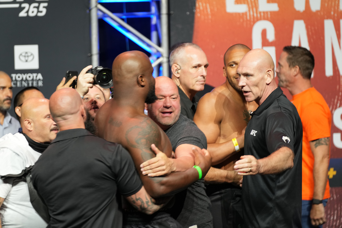 Con la adrenalina alta por actuar frente a los fanáticos de su ciudad natal, Lewis no perdió el tiempo y, poco después de bajarse de la báscula, partió como un ‘camión sin frenos’ hacia el oponente, teniendo que ser separado por Dana White y por los miembros de seguridad del evento. Incluso siendo detenido por el presidente de la UFC, el estadounidense insistió en acercarse lo más posible a Gane para el partido e incluso aprovechó la oportunidad para provocar a su rival con algunas palabras poco amistosas.