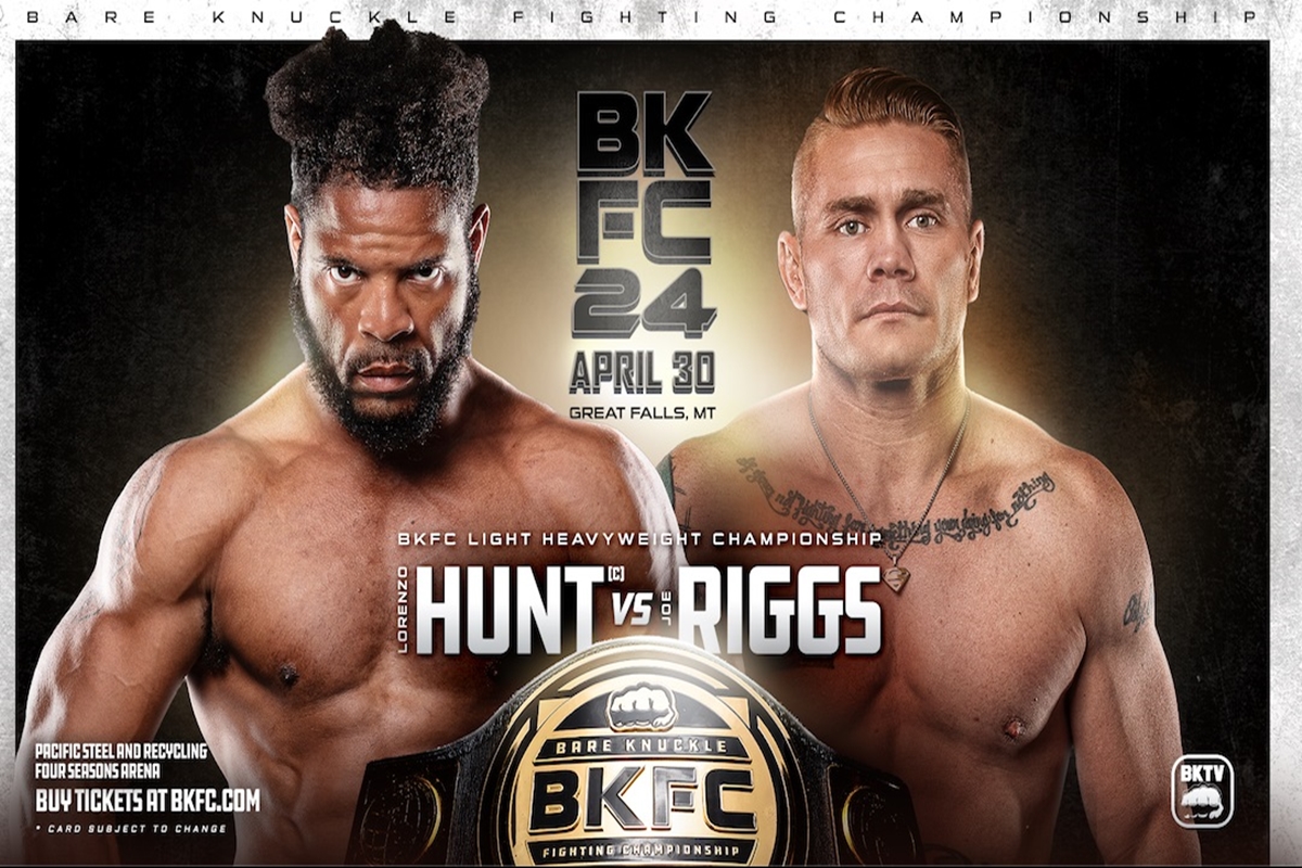 Este sábado (30), Lorenzo Hunt defenderá su campeonato mundial de peso semicompleto de Bare Knuckle FC contra el retador Joe Riggs, en la edición número 24 que se realizará en Great Falls, Montana (EE.UU.).