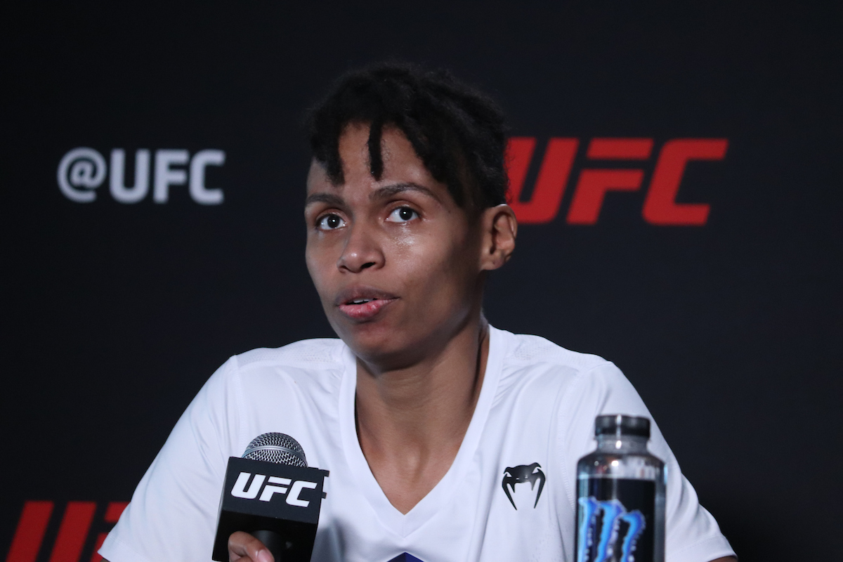 LAS VEGAS, NV - OCTOBER 16: Luana Carolina interacts with media after the UFC Vegas 40: Ladd v Dumont event at UFC Apex on October 16, 2021 in Las Vegas, Nevada, United States. (Photo by Diego Ribas/PxImages)