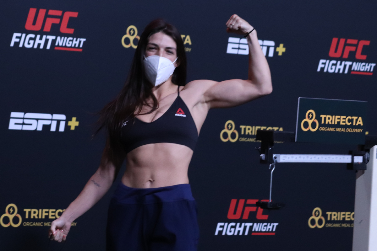 Multicampeona de jiu-jitsu, la deportista, que ya había fallado en la balanza tres veces anteriormente en su carrera, siendo una de ellas en la UFC, dio un susto y volvió a sufrir con el corte de las últimas libras. Penúltima en pesarse, cuando solo faltaban 20 minutos para el final, la estadounidense hija de brasileños subió 52,1 kg.