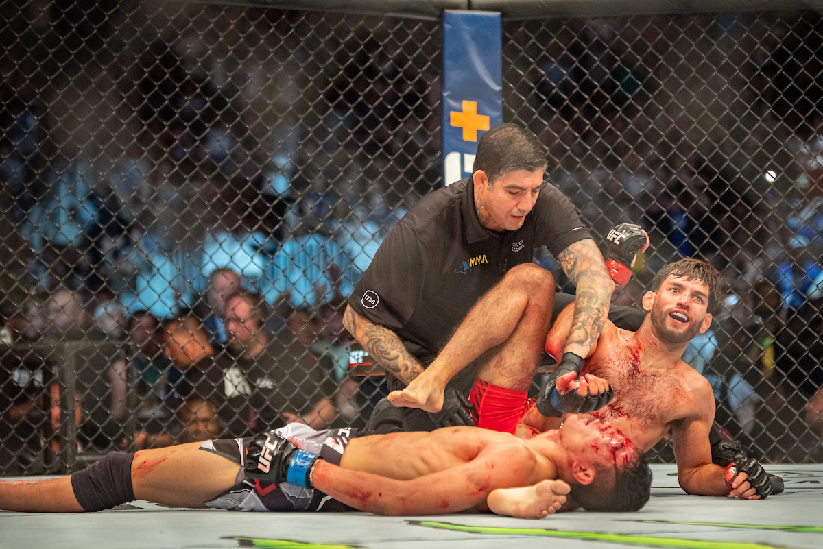 Matt Schnell derrotó a Su Mudaerji por la vía de la sumisión luego de una intensa y emocionante batalla válida por el peso mosca (125 lb) del UFC Long Island, que se llevó a cabo este sábado (16), en el ‘UBS Arena’ en Nueva York (EE.UU.).