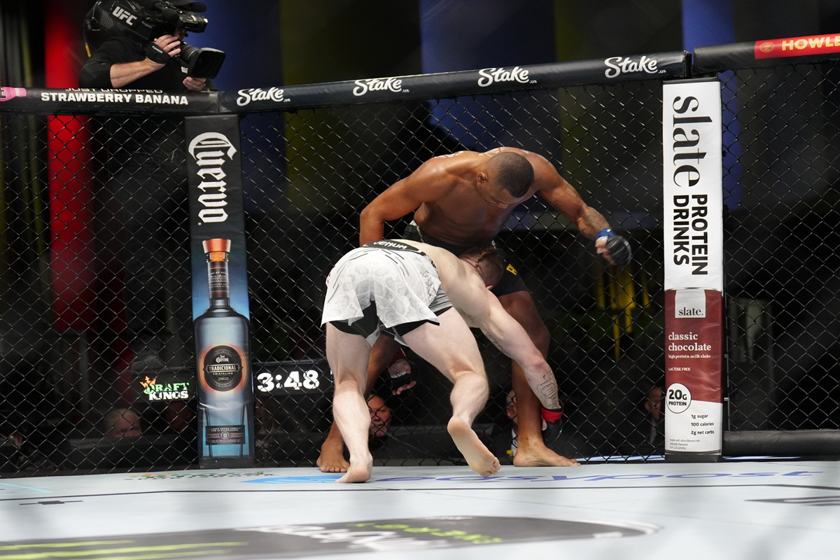 El inicio de la escuadra brasileña estuvo a cargo del invicto César Almeida enfrentando al norteamericano, Dylan ‘The Mindless Hulk’ Budka en las 185 libras. Cesinha impuso el triunfo del striking sobre la lucha y puso final al combate en el segundo round para sumar su quinta victoria por la vía rápida. Si bien, Cesinha sufrió el primer round a ras de lona tras un derribo temprano de parte de Bulka, el brasileño logró revertir y finalizó al rival que no tenía más estrategia que llevarlo al piso o presionarlo contra las rejas. La paciencia fue aliada para que pudiera concretar la victoria por la vía del intercambio.