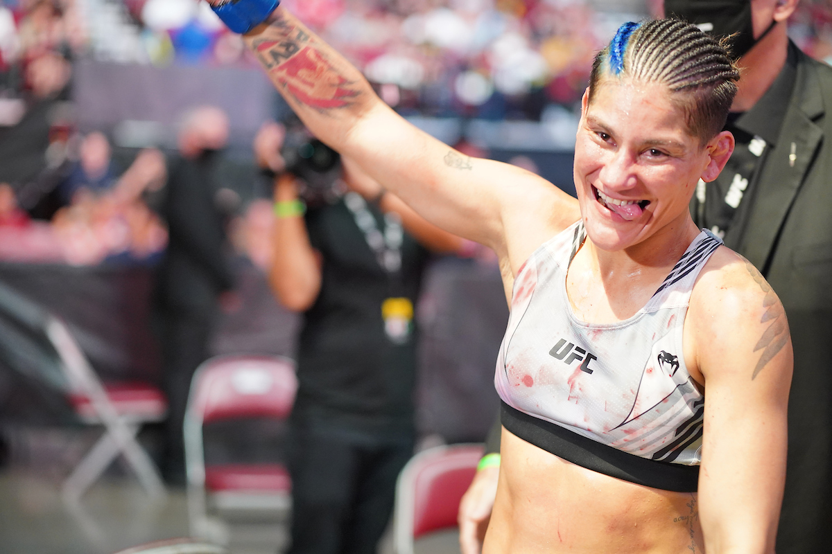 Después de un comienzo problemático en la UFC, con tres derrotas consecutivas, Priscila ‘Pedrita’ dio la vuelta a la organización a lo grande. En sus más recientes presentaciones en la empresa, la brasileña sumó dos triunfos, ambos por nocaut, para ponerse en ascenso y ya mirar hacia vuelos más altos en la división de peso mosca (125 lb). Para confirmar su buena fase, la atleta se enfrenta a Gillian Robertson este sábado en el UFC 269.