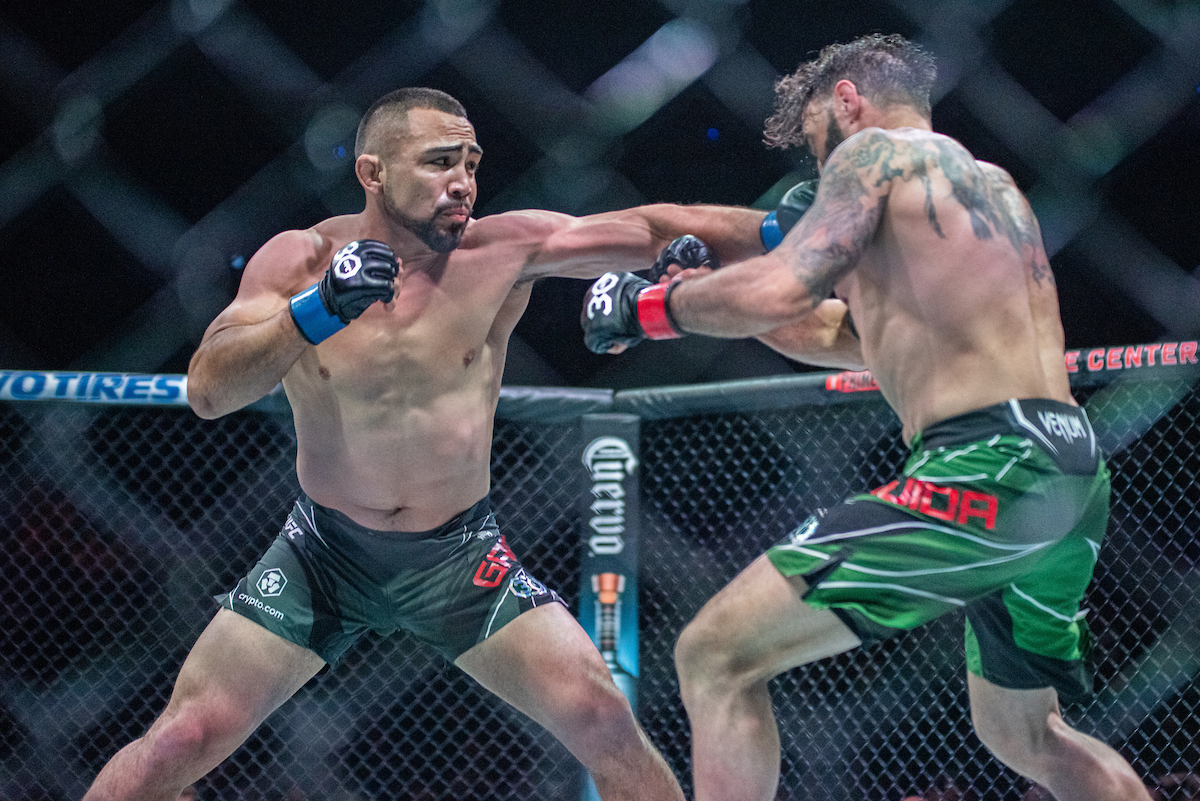 La pelea inició con mucha acción y con Guida mucho más activo. El mexicano también pudo responderle al estadounidense y conectarlo. Ambos intercambiaron en el final del round.