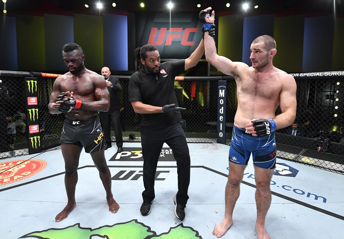 El jamaiquino salió con todo para el round final en busca de un nocaut que le concediera la victoria en este evento estelar, sin embargo Strickland se defendía bien en las primeras de cambio y se mostraba en mejor condición física y buscaba consumir el tiempo restante para sellar la victoria. Los jueces le dieron el triunfo a Strickland por decisión unánime en la pelea estelar de UFC Vegas 33. De esta forma el peleador suma su quinta victoria consecutiva y deja récord de 24-3 en su carrera como profesional en las MMA.