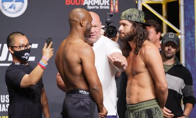/ hace 5 añosUsman y Masvidal protagonizan una tensa mirada en el pesaje abierto al público