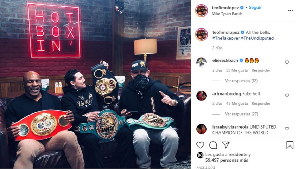 Teófimo López logró unificar los títulos mundiales de peso ligero tras derrotar por decisión unánime a Lomachenko el pasado 17 de octubre. De esta forma se declaró como campeón indiscutido de la división por ostentar los cetros de la Federación Internacional de Boxeo (FIB), la Asociación Mundial de Boxeo (AMB), la Organización Mundial de Boxeo (OMB) y el campeonato franquicia del Consejo Mundial de Boxeo (CMB), este último creó con un conflicto con Devin Haney quien posee el cinturón de esa categoría en la CMB.