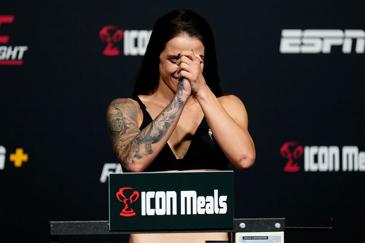 Con la marca de 136 lb, la atleta mostró alivio al confirmar su duelo en la cartelera de UFC Vegas 90, cuando se enfrentará a la ex campeona de peso pluma, Germaine de Randamie. La neerlandesa, que pesaba unos 500 gramos menos, regresa al octágono después de más de tres años de inactividad.