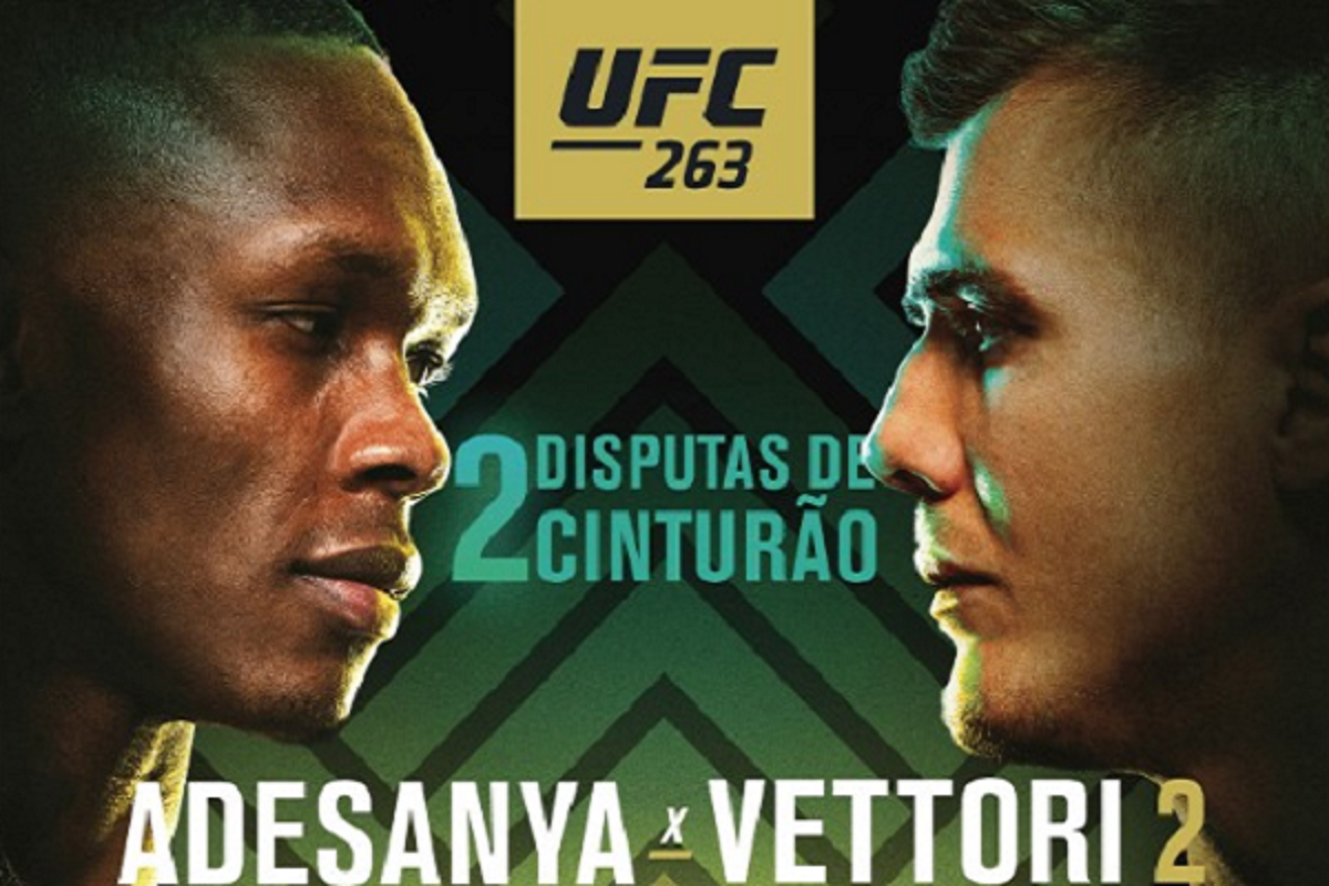 UFC 263 ya tiene póster oficial. El evento, que se realizará el 12 de junio, en Texas (EE. UU.), divulgó el cartel oficial a través de las redes sociales de la organización. El programa contará con dos concursos de cinturones y dos revanchas. El evento principal será entre Israel Adesanya y Marvin Vettori, por la corona de peso mediano (185 lbs). En la pelea co-estelar de la noche, Deiveson Figueiredo busca su tercera defensa del título de peso mosca (125 lbs) cuando se enfrente a Brandon Moreno.