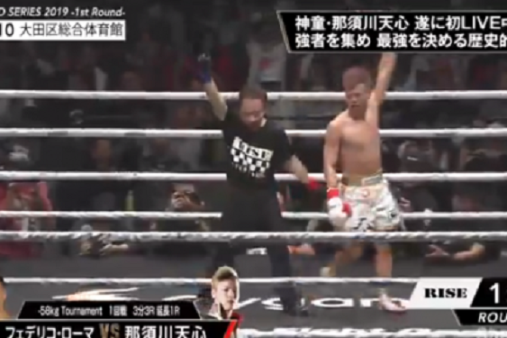El combate del torneo ‘RISE’ terminó con un impresionante nocaut de Nasukawa. El japonés superó a Federico Roma con un movimiento de extrema dificultad y plasticidad (ver abajo o haga clic aquí). La victoria acreditó al joven kickboxer para la semifinal del campeonato.